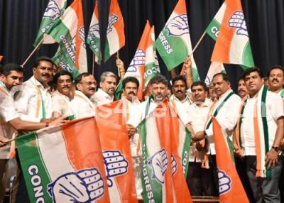 Photo Caption : BJP and JDS leaders of Yeshwanthpur Assembly Constituency joined Congress party in the presence of KPCC President DK Shivakumar at KPCC office, in Bengaluru on Monday 21st August 2023