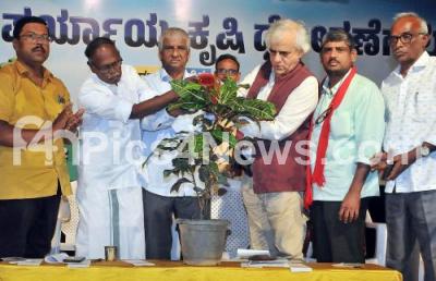 Photo Caption : Senior Journalist P Sainath with GC Bayya Reddy, State President, Karnataka Pranth Raitha Association, D Raveendran, National Joint Secretary, AIKS, N Venkatachalaiah and others during National seminar on Alternative farming methods at Kondajji Basappa Auditorium, in Bengaluru on Thursday 24th August 2023