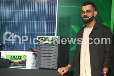 Photo Caption : Indian Cricketer Virat Kohli during the launch of “Amaze” battery and solar products, in Bengaluru on Monday 28th August 2023