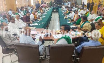 Photo Caption : Mukhyamantri Chandru with Kuruburu Shanthakumar, Farmers, various kannada organisations leaders during a roundtable meeting on Cauvery river, in Bengaluru on Tuesday 29th August 2023