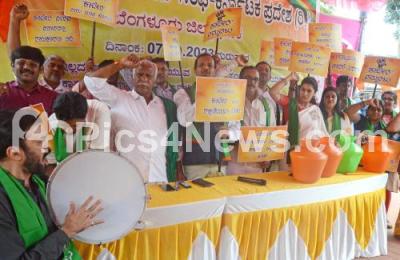 Event Description : Members of Bharatiya Kisan association protesting against the state government demanding not to let Cauvery water to Tamil Nadu at Freedom park, in Bengaluru on Thursday 7th September 2023