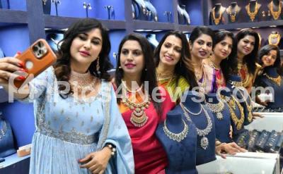 Event Description : Ex MLA Sowmya Reddy along with models during the Bridal Jewellery and All Wedding Needs Exhibition at Palace grounds, in Bengaluru on Friday 8th September 2023