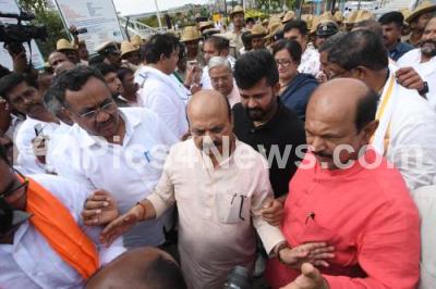 Photo Caption : Former CM Basavaraj Bommai with BJP leaders Ashwath Narayan, MP Sumalatha Ambareesh and others visited the KRS Dam to inspect the water level, in Mysuru Friday 8th September 2023