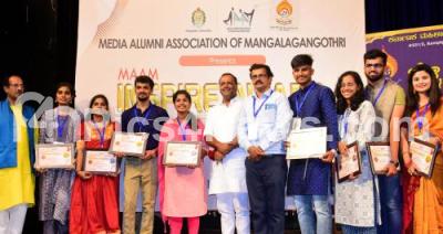 Photo Caption : Assembly Speaker UT Khader presented the MAAM (Media Alumni Association of Mangalagangotri) Inspire Award to students at Ravindra Kalakshetra, in Bengaluru on Sunday 10th September 2023