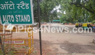 Photo Caption : Deserted look at Prepaid auto stand at City Railway station, following Karnataka Private transport unions and other transport associations called Bengaluru Bandh demanding the withdrawal of the Congress governments Shakti Yojana (Scheme), in Bengaluru on Monday 11th September 2023