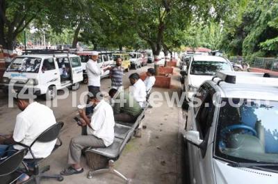 Photo Caption : Taxi drivers at City Railway Station, following Karnataka Private transport unions and other transport associations called Bengaluru Bandh demanding the withdrawal of the Congress governments Shakti Yojana (Scheme), in Bengaluru on Monday 11th September 2023