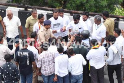 Photo Caption : Karnataka Private transport unions and other Transport Associations members arguing with the Rapido biker, following Karnataka Private transport unions and other transport associations called Bengaluru Bandh demanding the withdrawal of the Congress governments Shakti Yojana (Scheme), in Bengaluru on Monday 11th September 2023