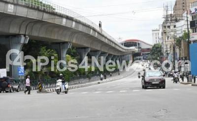 Photo Caption : Deserted MG road, following Karnataka Private transport unions and other transport associations called Bengaluru Bandh demanding the withdrawal of the Congress governments Shakti Yojana (Scheme), in Bengaluru on Monday 11th September 2023
