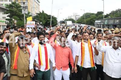 Various transport associations participated in the protest rally from City Railway station to Freedom Park following Karnataka Private transport unions and other transport associations called Bengaluru Bandh demanding the withdrawal of the Congress governments Shakti Yojana (Scheme), in Bengaluru on Monday 11th September 2023