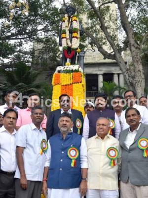 DCM DK Shivakumar with Ministers Satish Jarkiholi, Ramalinga Reddy, K. T. Nagaraj, General Secretary of Karnataka Engineers Federation, Vice President D. K. Devaraj, KEB Engineers Association General Secretary T.N. Sudhakara Reddy, Vice President Shivanand Hoogar, Krishnamurthy, President of PWD Engineers Association, Principal Secretaries and Secretaries, Chief Engineers during birth anniversary of Sir M. Vishweshwaraiah and Engineers Day, in Bengaluru on Friday 15th September 2023