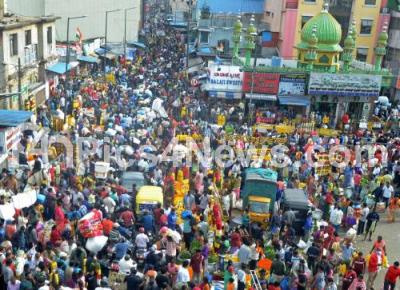Photo Caption : People shopping flowers at KR Market, on the eve of Ganesh Chaturthi Festival, in Bengaluru on Sunday 17th September 202