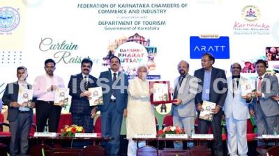 Photo Caption : Minister HK Patil with BV Gopal Reddy, President FKCCI and others launched the brochure and website of Dakshin Bharath Utsav during the curtain raiser program of Dakshin Bharath Utsav at FKCCI, in Bengaluru on Friday 22nd September 2023