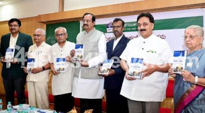 Photo Caption : Nadoja Dr. Woodey P Krishna releasing a book titled "Sri Tenmoti Kaisan" with Prof. Mallepuram G Venkatesha, Prof K Chandranna, Ra Num Chandrashekar, Dr. CV Geetha and others at Seshadripuram college , in Bengaluru on Saturday 23rd September 2023