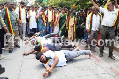Event Description : Members of Jaya Karnataka protesting against State Congress government and Cauvery Water Management Authority (CWMA) over its decision to ensure a flow of 5000 cusecs of Cauvery river water to Tamil Nadu till September 29, in Bengaluru on Saturday 23rd September 2023