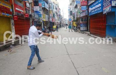 Photo Caption : Boys playing cricket at SP road, following the Karnataka Jala Samrakshana Samithi Bengaluru (Karnataka Water Conservation Committee Bangalore), Farmer leaders, Kannada organisations called Bengaluru Bandh, to protest against release of Cauvery river water to Tamil Nadu state, in Bengaluru on Tuesday 26th September 2023