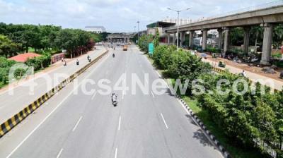 Photo Caption : Deserted look on Tumkur Highway Road, following the Karnataka Jala Samrakshana Samithi Bengaluru (Karnataka Water Conservation Committee Bangalore), Farmer leaders, Kannada organisations called Bengaluru Bandh, to protest against release of Cauvery river water to Tamil Nadu state, in Bengaluru on Tuesday 26th September 2023