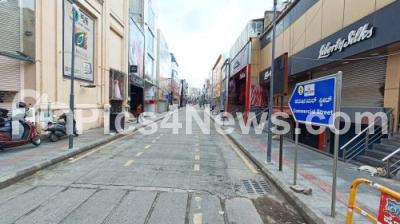 Photo Caption : Shops closed at the commercial hub Commercial Street, following the Karnataka Bandh called by Pro Kannada Activists, to protest against release of Cauvery river water to Tamil Nadu state, in Bengaluru on Friday 29th September 2023