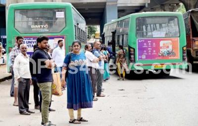 Photo Caption : Commuters had a tough time at Jalahalli Cross to reach to their destination, following the Karnataka Bandh called by Pro Kannada Activists, to protest against release of Cauvery river water to Tamil Nadu state, in Bengaluru on Friday 29th September 2023