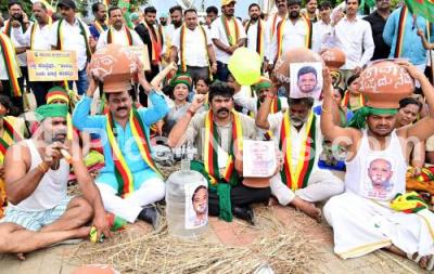 Members of Jaya Karnataka protesting against release of Cauvery river water to Tamil Nadu state, in Bengaluru on Friday 29th September 2023