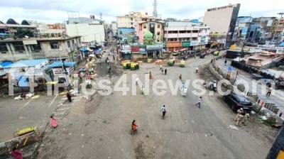 Commercial hub KR Market wears deserted look, following the Karnataka Bandh called by Pro Kannada Activists, to protest against release of Cauvery river water to Tamil Nadu state, in Bengaluru on Friday 29th September 2023