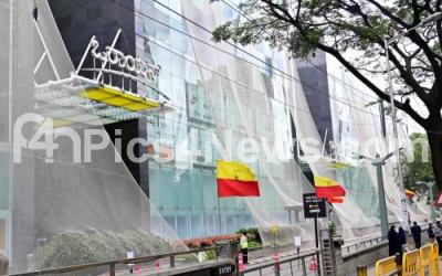 Photo Caption : Malls covered with the safety nets as precautionary measures, following the Karnataka Bandh called by Pro Kannada Activists, to protest against release of Cauvery river water to Tamil Nadu state, in Bengaluru on Friday 29th September 2023
