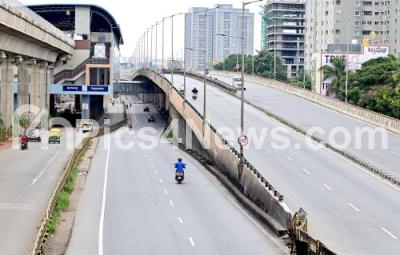 Photo Caption : Tumkur Road wears deserted look following the Karnataka Bandh called by Pro Kannada Activists to protest against release of Cauvery river water to Tamil Nadu state, in Bengaluru on Friday 29th September 2023