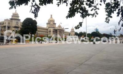 Vidhana Soudha on Ambedkar Vedi road wears deserted look, following the Karnataka Bandh called by Pro Kannada Activists, to protest against release of Cauvery river water to Tamil Nadu state, in Bengaluru on Friday 29th September 2023