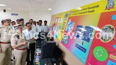 Photo Caption : Police Commissioner B Dayananda inspects the mobile, laptop, hard disk and other seized items by Cyber crime police during a property parade at Police Commissioner office, in Bengaluru on Saturday 30th September 2023