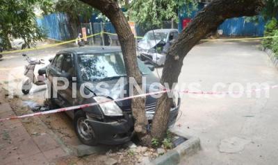 Wrecked vehicles at Maharani College premises, after the Maharani College Prof. Nagaraj car hit the vehicles while he trying to park his car, in this incident 2 students Ashwini and Nandapriya and Music teacher were injured, in Bengaluru on Saturday 7th October 2023