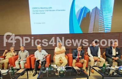Photo Caption : DCM DK Shivakumar interaction meeting with the members of the Outer Ring Road Companies Association (ORRCA) to decongest the Outer Ring Road, also seen are BBMP Commissioner Tushar Girinath, Additional Chief Secretary, Water Resources Department, Rakesh Singh, Police Commissioner Dayananda B and others, in Bengaluru on Saturday 7th October 2023