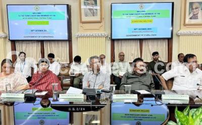 Revenue Minister Krishna Byre Gowda, Agriculture Minister Cheluvarayaswamy, Chief Secretary Vandita Sarma and other officials meeting with central drought study team at Vidhana Soudha, in Bengaluru on Monday 9th October 2023