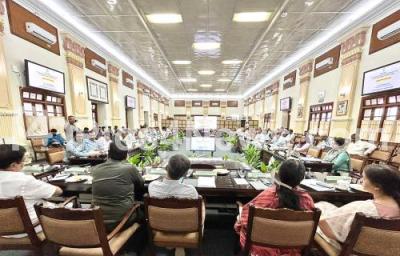 Photo Caption : Revenue Minister Krishna Byre Gowda, Agriculture Minister Cheluvarayaswamy, Chief Secretary Vandita Sarma and other officials meeting with central drought study team at Vidhana Soudha, in Bengaluru on Monday 9th October 2023