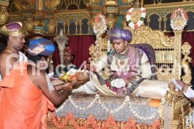 Yaduveer Krishnadatta Chamaraja Wadiyar, Maharaja of Mysore at the Private durbar hall during inauguration of Dasara 2023 celebrations, in Mysuru on Sunday 15th October 2023