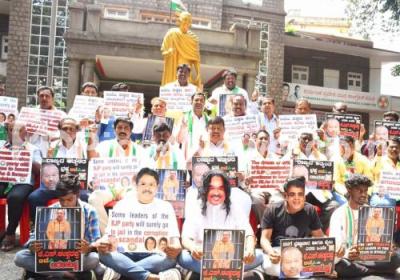 Event Description : Members of Karnataka Congress staged a protest against the Karnataka State BJP leaders at Congress Bhavan, in Bengaluru on Sunday 22nd October 2023
