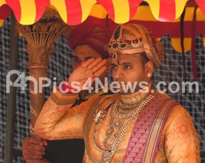 Photo Caption : Yaduveer Krishnadatta Chamaraja Wadiyar, Scion of Mysuru Royal Family performing Ayudha Pooja as part of Dasara festivals, in Mysuru on Monday 23th October 2023