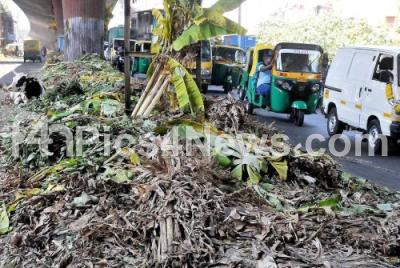 Festival garbage piled up at KR Market after Ayudha pooja, in Bengaluru on Wednesday 25th October 2023