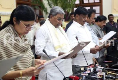 Photo Caption : CM Siddaramaiah administering the oath during the Birth Anniversary program of Sardar Vallabhbhai Patel, on the National Unity Day at Vidhana Soudha, in Bengaluru on Tuesday 31st October 2023