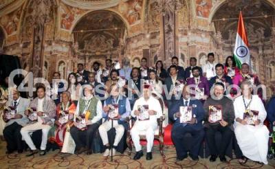 Photo Caption : Governor of Karnataka Thaawarchand Gehlot with Former Union Minister SM Krishna, Dharmasthala Dharmadhikari Sri Veerendra Hegde, Former Indian Cricketer Venkatesh Prasad, MP Tejasvi Surdya, Actors Upendra, Ravichandran and others during the "Champions of Change Karnataka Awards" ceremony organized by the Interactive Forum on Indian Economy , in Bengaluru on Tuesday 7th November 2023