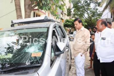 Photo Caption : MLA Munirathna inspected the damaged cars, which were damaged by some miscreants last night at Ward 69 Laggere, Rajarajeshwari Nagar Assembly Constituency, in Bengaluru on Friday 10th November 2023