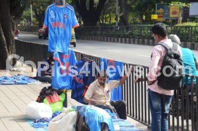 Event Description : Indian Cricket team jersey selling near Chinnaswamy Stadium ahead of ICC Cricket World Cup match between India vs Netherland, in Bengaluru on Saturday 11th November 2023