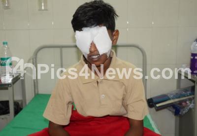 Photo Caption : A boy Vinod being treated at Minto Hospital, after suffering eye injury while bursting firecrackers, celebrating Diwali Festival, in Bengaluru on Wednesday 15th November 2023