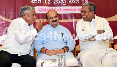 Photo Caption : CM Siddaramaiah with Former CM Basavaraj Bommai and Former Minister V Somanna during the "Ramanashree Sarana" award presentation ceremony organized by Akhil Bharat Sarana Sahitya Parishad and Ramanasree Pratistana, in Bengaluru on Thursday 16th November 2023