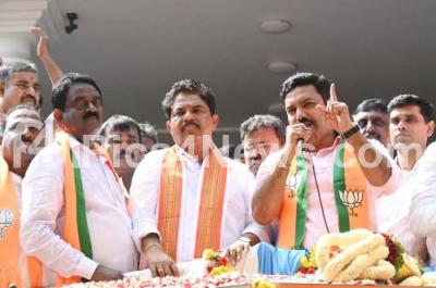 Photo Caption : BJP State President BY Vijayendra and Opposition party leader R Ashoka during their visit to BJP office, in Bengaluru on Saturday 18th November 2023
