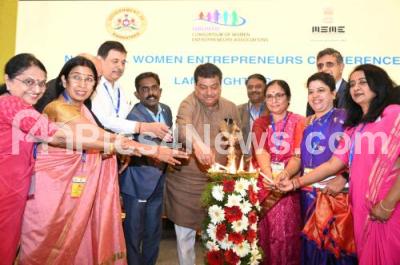 Photo Caption : MB Patil, Minister for Large and Medium Scale Industries GoK interacting with the Women entrepreneurs during the inauguration of "National Women Entrepreneurship Day" at a program organised by UBUNTU at a private hotel, in Bengaluru on Saturday 18th November 2023