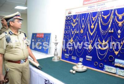 Photo Caption : Police Commissioner B Dayananda inspects the recovered jewels and cash, which were seized by West Division Vijaya Nagar Sub Division police personnel, in Bengaluru on Tuesday 21st November 2023