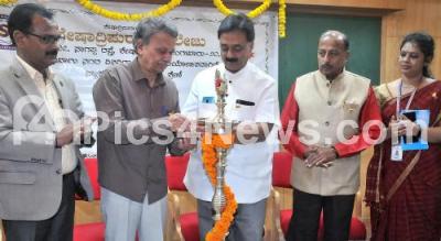 Photo Caption : Senior Writer Dr. Baraguru Ramachandrappa with Dr. Woodey P Krishna, MS Nataraj, Principal BG Bhaskar and others during the "Hesaraitu Karnataka 50" as part of Kannada Rajyotsava at Seshadripuram College, in Bengaluru on Tuesday 21st November 2023