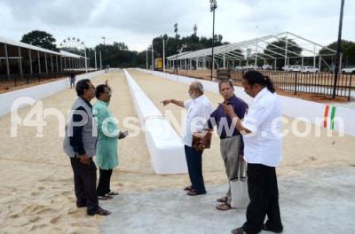 Photo Caption : Preparations underway for the Bengaluru Kambala Namma Kambala at Palace Grounds, in Bengaluru on Tuesday 21st November 2023