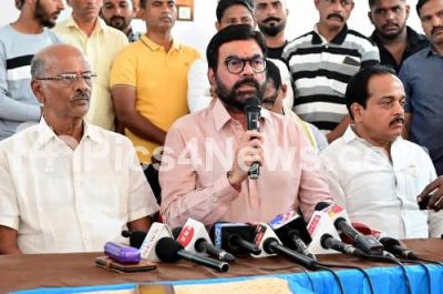 Photo Caption : MLA Ashok Kumar Rai with Prakash Shetty, Kambala Organising Committee Chairperson and others addressing media on Bengaluru Kambala Namma Kambala at Palace Grounds, in Bengaluru on Friday 24th November 2023