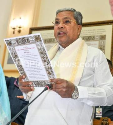 Photo Caption : Chief Minister of Karnataka Siddaramaiah with Minister HC Mahadevappa, Government officers and staffs taking oath during the Constitution Day celebrations at Vidhana Soudha, in Bengaluru on Sunday 26th November 2023