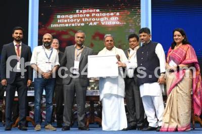 Photo Caption : Chief Minister of Karnataka Siddaramaiah with DCM DK Shivakumar, Industries Minister MB Patil, IT BT Minister Priyank Kharge, Chief Secretary Vandita Sharma, IT BT Department Secretary Dr. Ekroop Kaur, Entrepreneurs Mark Papermaster, Kris Gopalakrishnan, Dr. Kiran Majumdar Shah, Nivriti Rai, Arvind Kumar and others during the inauguration of "Bengaluru Tech Summit" at Palace Grounds, in Bengaluru on Wednesday 29th November 2023
